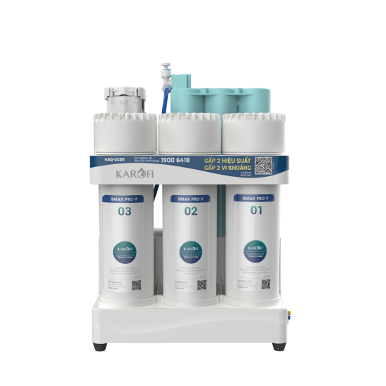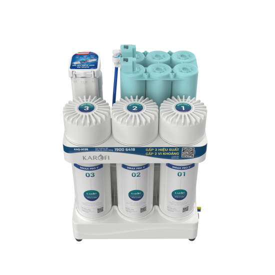 Máy lọc nước RO Karofi KAQ-UC05 sở hữu 10 lõi lọc Smax thế hệ mới, bao gồm: 3 lõi lọc thô, màng RO và các lõi lọc chức năng. Các lõi lọc được sắp xếp khoa học, giúp chống tái nhiễm khuẩn hiệu quả và dễ dàng thay thế.